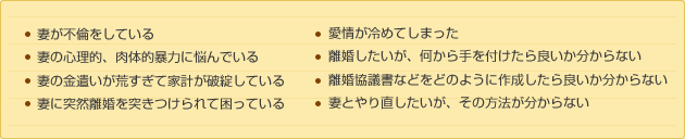 結婚生活でお悩みの方はどんな些細な事でもお気軽にご相談下さい。